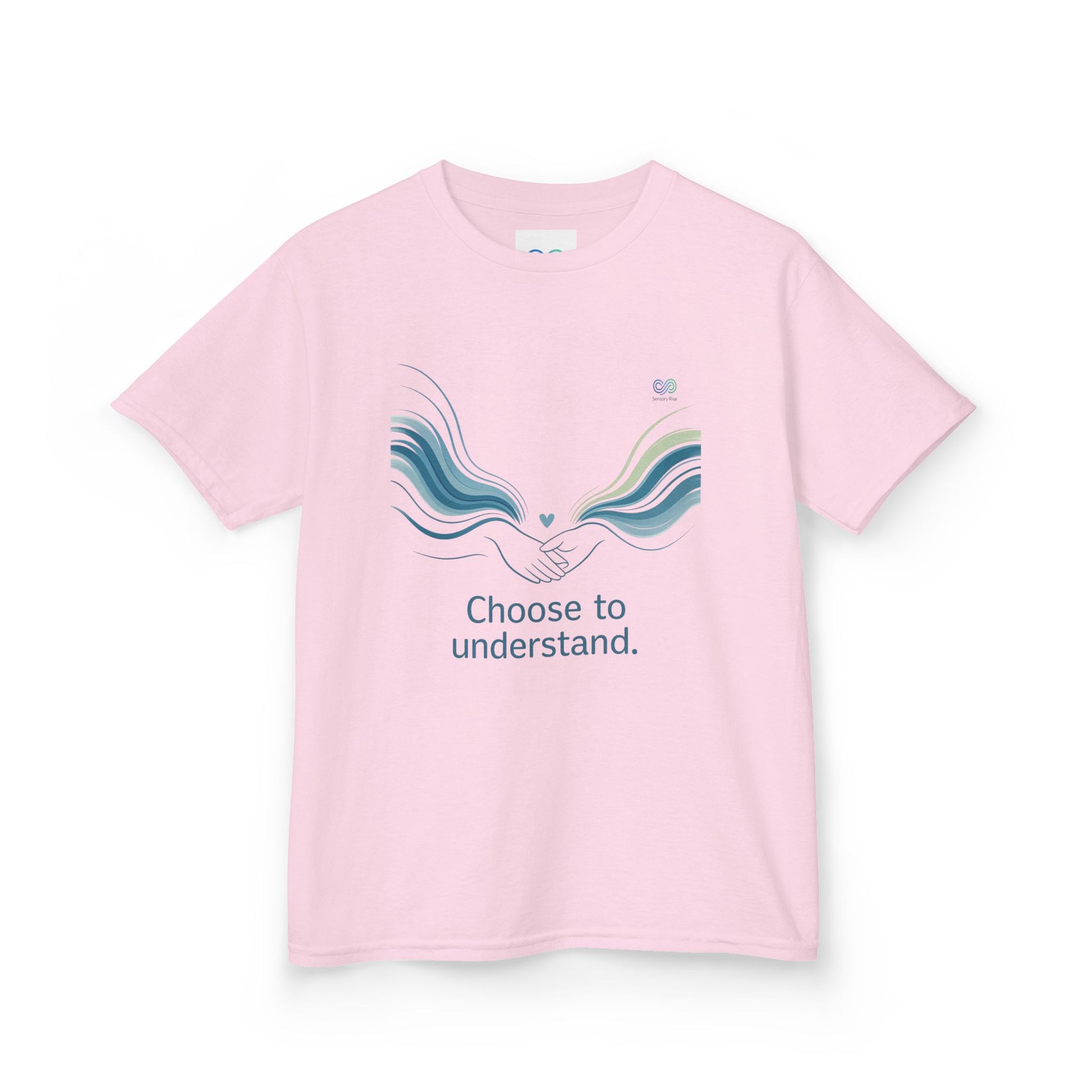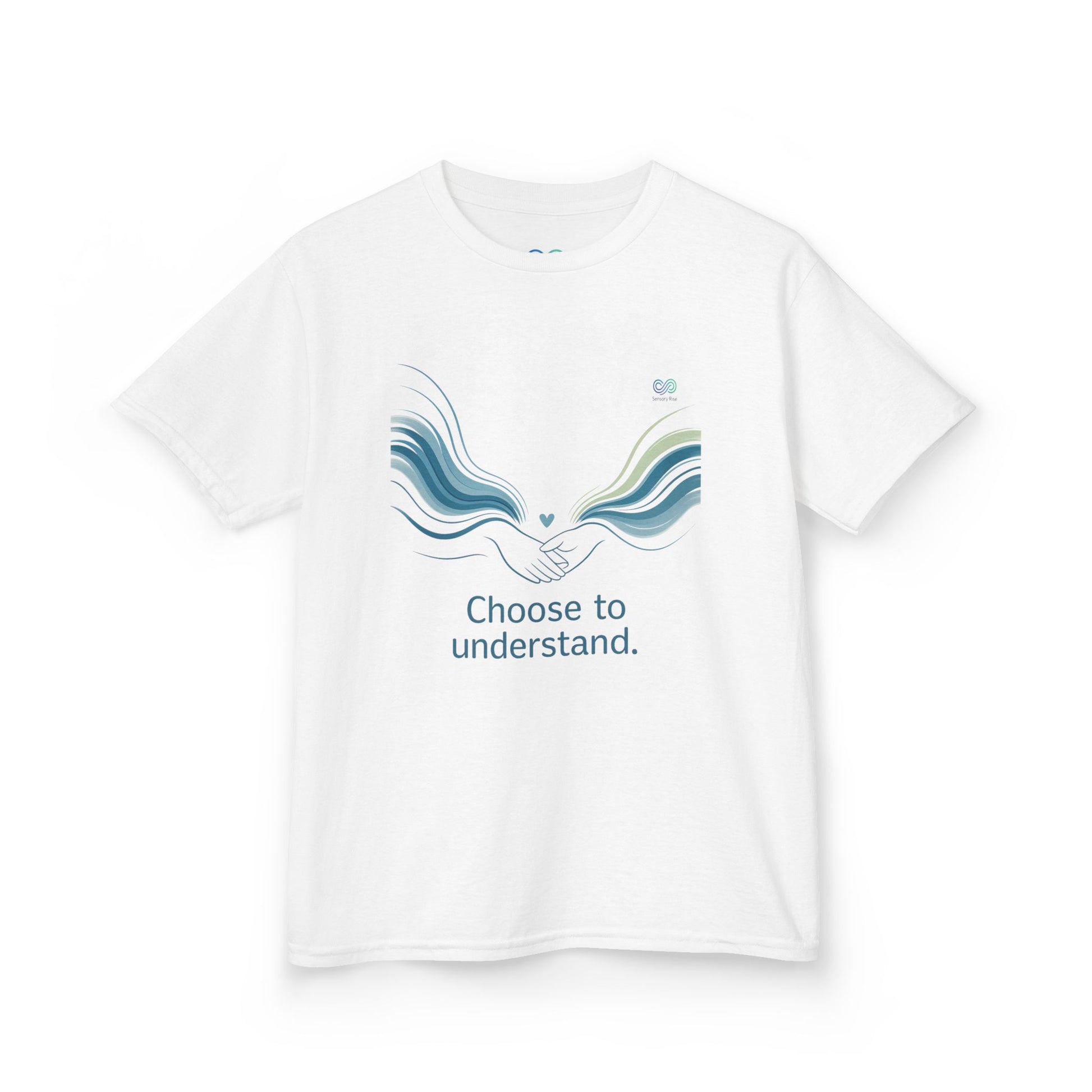Kids Unisex Tee — “Choose to Understand” Wave Graphic | Soft Blue-Teal Awareness Design by Sensory Rise